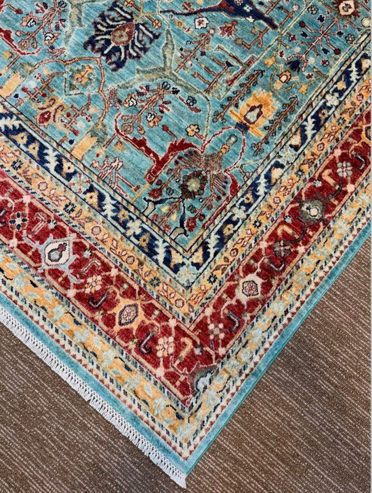 Authentic Afghan Handwoven Rug 5×7 ft – Blue & Red Carpet