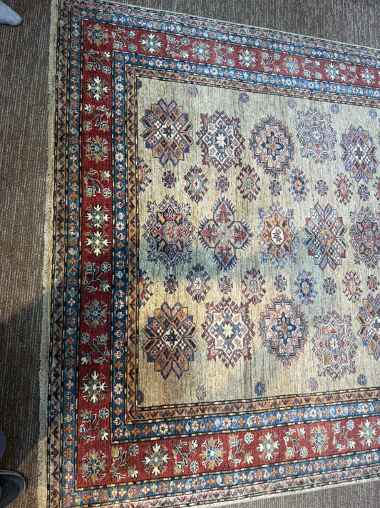 Handmade Afghan Kazak Rug 6×8 ft – Traditional Wool Carpet in Brown & Red