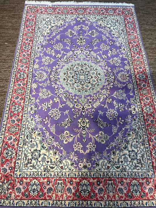 Fine Quality Persian Nahine Rug – 6x4 FT Purple & Red Handmade Carpet